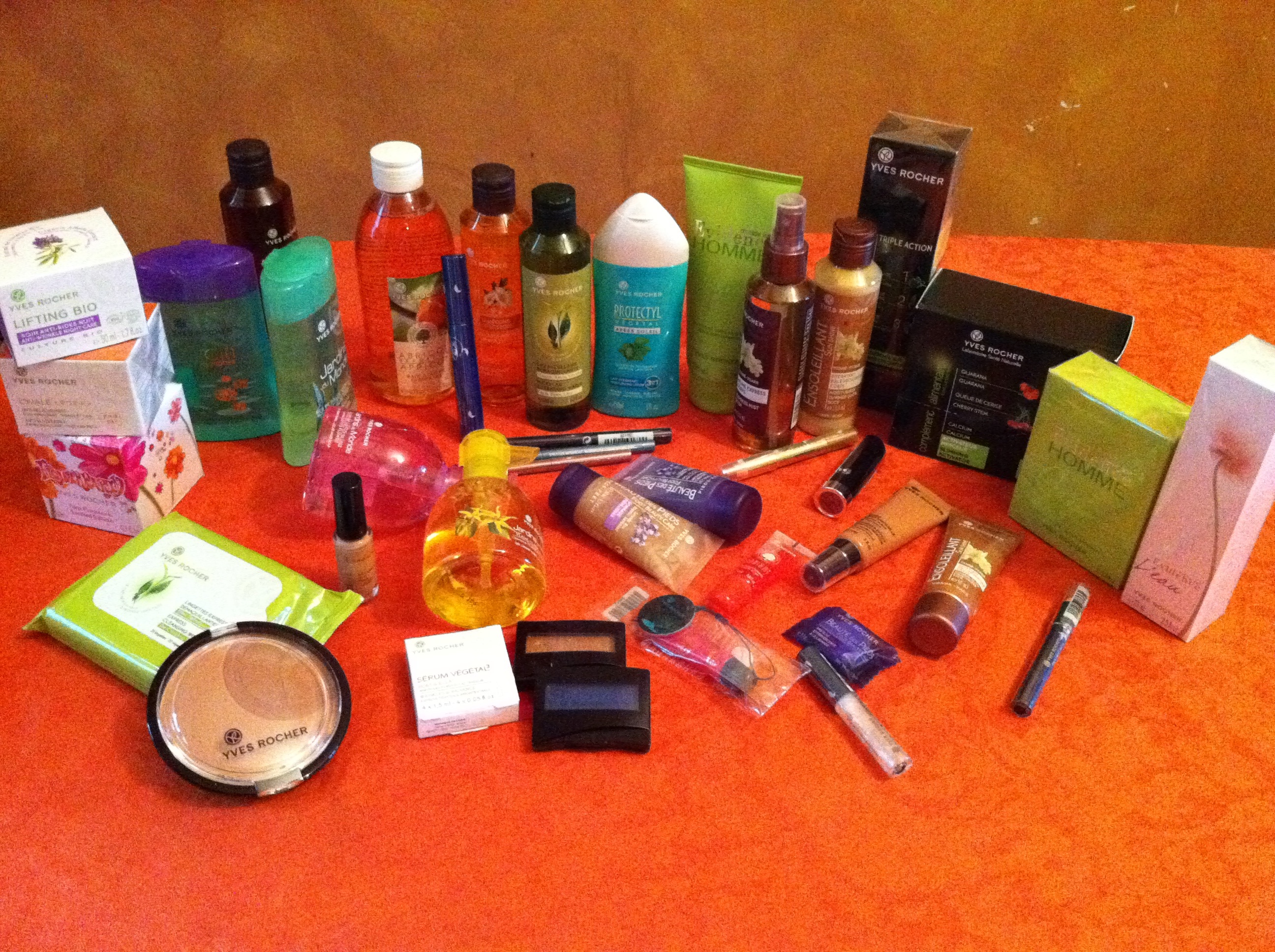 les produits du gros lot du jeu concours des tongs Yves Rocher